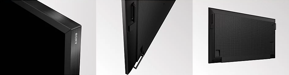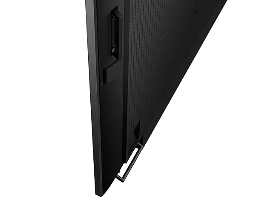 2021年発売のFW-100BZ40J/BZから、本体質量は21.7kgの軽量化、カートンの体積も約34%の小型化を実現。本体のベゼル幅も4辺均等で、上下左右対称デザインです。さらに本体の壁掛けユニット取付穴がセンター設計のため、縦置きスタンドや金具設置時も、スムーズな設置が可能。開梱前のエレベーターでの搬入時に、縦置きでの移動が可能となり、設置性が大幅に向上しています。